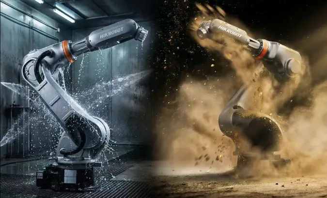 防护性能全面升级,标配小臂及手腕 IP67、基座与大臂 IP54 防护,可选配整机 IP67,从容应对粉尘、高湿度等恶劣工况。